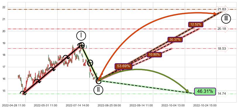 ➣ 【已确认突破】最后价格:16.39与最小【反转】第一目标价格→(08-22:12: 14.12 )相较: 下跌空间【较大】