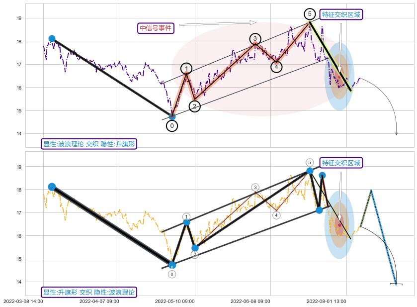 ➢ 波浪理论与升旗形信号事件周期长度级别相同,同周期信号事件