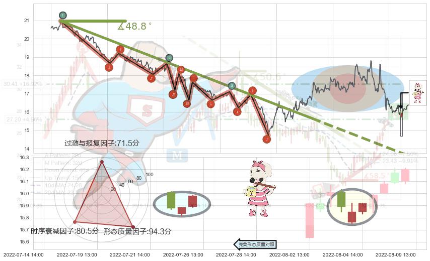 ♘ 阻力价格位18.48,可信任强度92.94%,距离最后交易2022-08-12 14:00形成的收盘价格16.39相差 +12.73%
