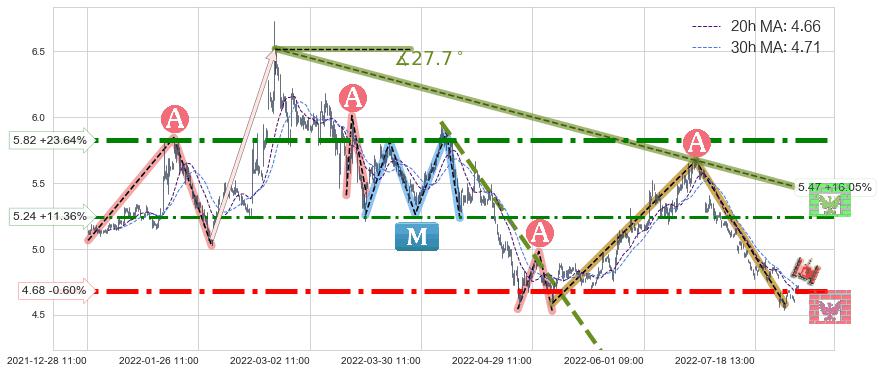 ♞ 20小时均线:4.66,30小时均线:4.71→ 快线<慢线