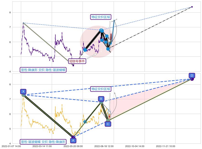 ➢ 降旗形属【短级别信号事件】谐波蝴蝶属【长级别信号事件】长短周期组合信号事件, 短长事件长度比29.08%