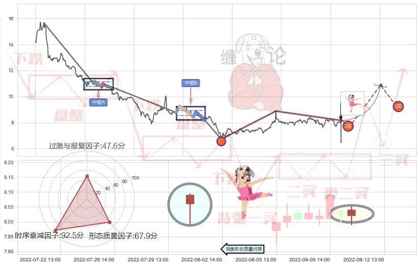从2022-06-01 09:00至2022-08-12 14:00,共包含137个小时,阶段股价下跌-7.54%,阶段股价变动位移路程比: 1 : 14