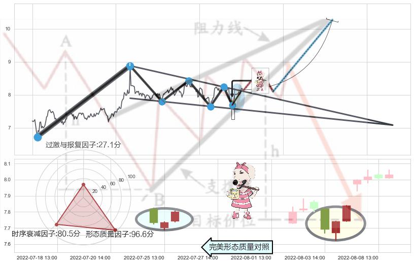 ♘ 支撑价格位7.46,可信任强度83.59%,距离最后交易2022-08-12 14:00形成的收盘价格8.15相差 -8.42%