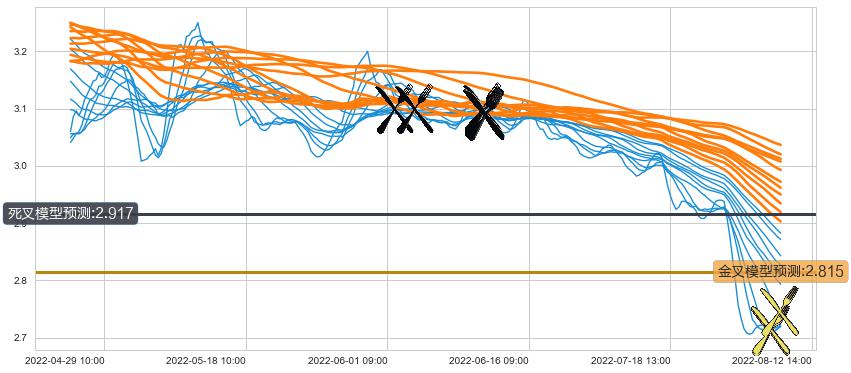➣ 34小时均线于(06-10 14:00: 3.086)形成【死叉】基于【死叉历史模型】预测死叉后最低波谷价格: 2.934, 死叉后最低价格2.690,已经下跌超出预测最低波谷价格, 预期反弹