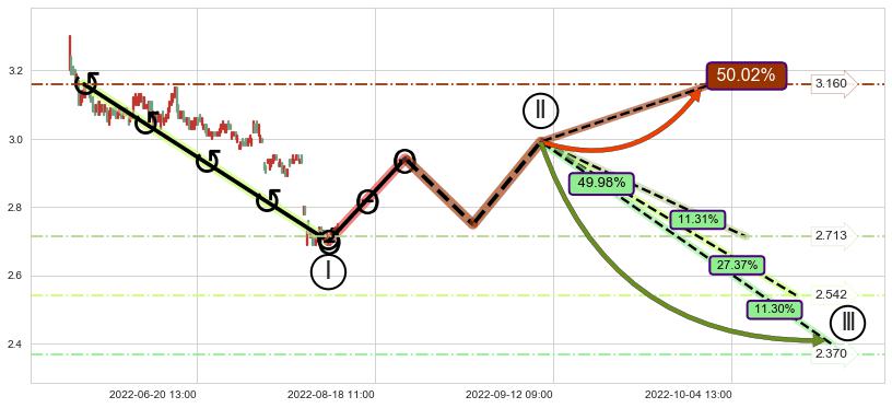 2022-07-06: 第一阻力位2.965有效抑制了下跌浪,成功阻止了价格的继续下跌。