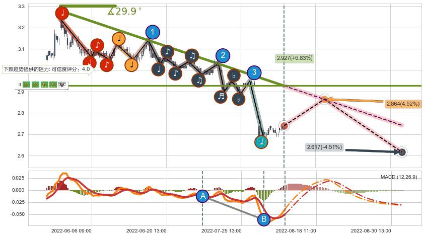 ➣ 预测:2022-09-01 09:00,【继续下探】稳定目前下跌趋势的前提下,预测价格:2.617