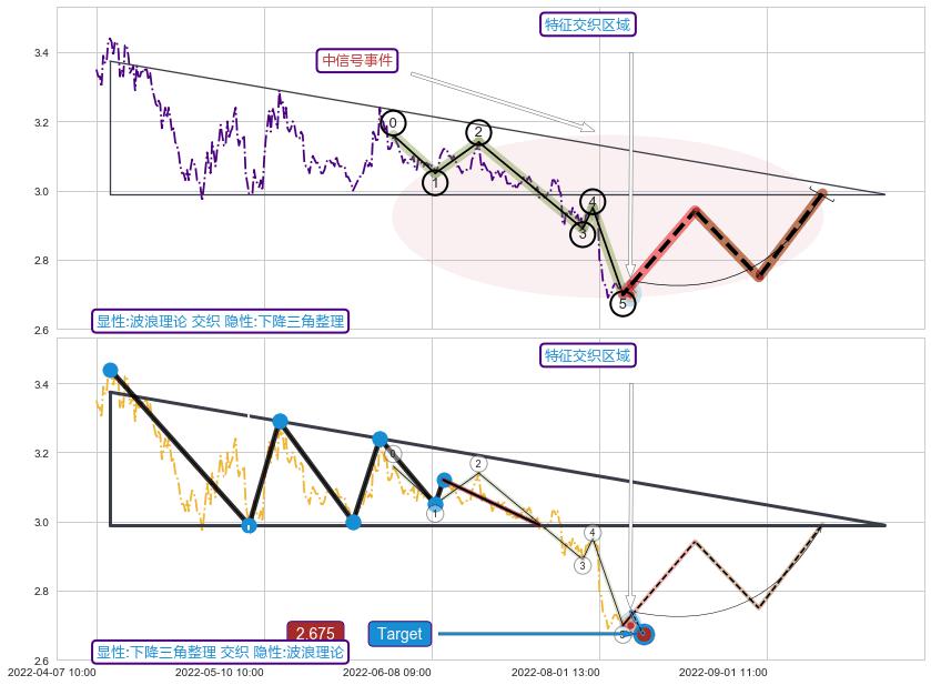♘ 在最后的下跌阶段2022-05-30 09:00至2022-08-09 14:00,存在 持续未破位的阻力位 ,阻力价格2.927,可信任强度83.14%,其距离最后价格2.740相差 +6.83%