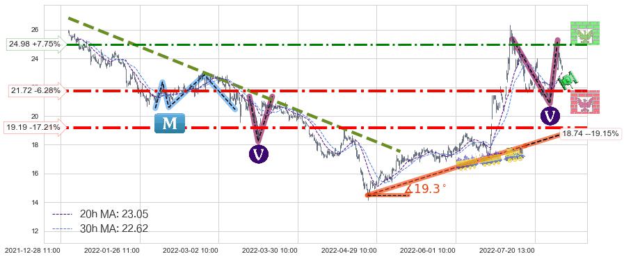 ♞ 20小时均线:23.05,30小时均线:22.62→ 快线>慢线