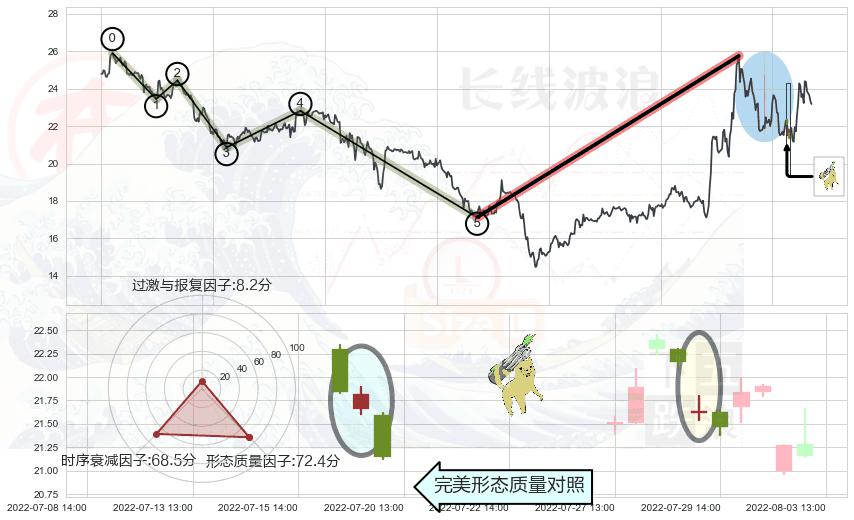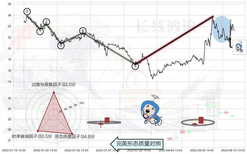 ➢ 🕰 价格走势在2022-08-05 14:00:00至2022-08-05 14:00:00期间形成单针探底(定海神针),残存影响值:6.84