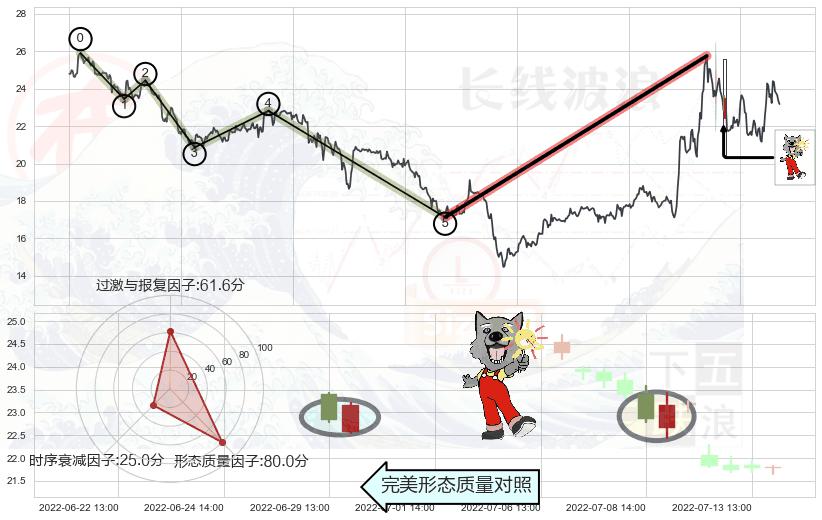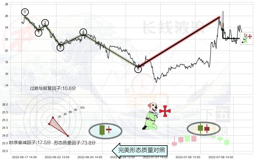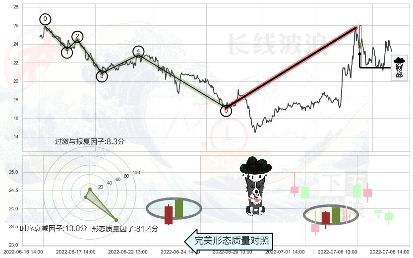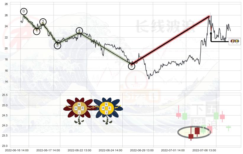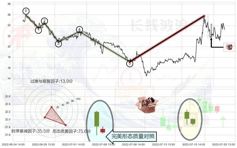 ➢ 🕰 价格走势在2022-07-14 13:00:00至2022-07-14 14:00:00期间形成底部尽头线(上山虎),残存影响值:2.75