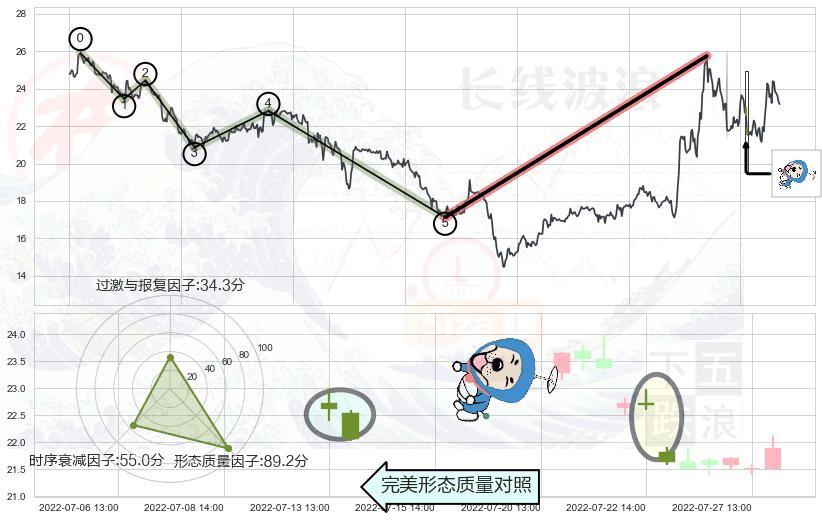 ➢ 🕰 价格走势在2022-07-22 14:00:00至2022-07-25 13:00:00期间形成下跌螺旋桨,残存影响值:-4.42