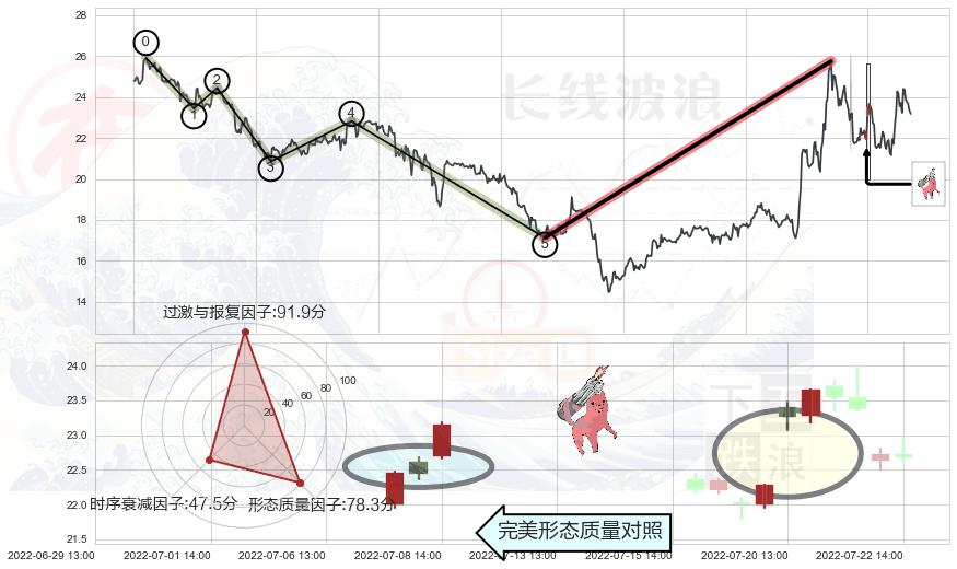 ➢ 🕰 价格走势在2022-07-21 14:00:00至2022-07-22 13:00:00期间形成射击之星形态,残存影响值:-5.42
