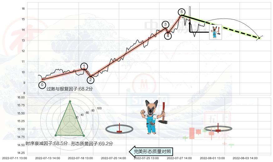 ➣ 2022-04-27 09:00-2022-08-03 13:00上升趋势存在反转[风险],虽然原上升趋势的支撑位(15.48)已破位,但其支撑效果尚存,原上升趋势角度: 53.1˚