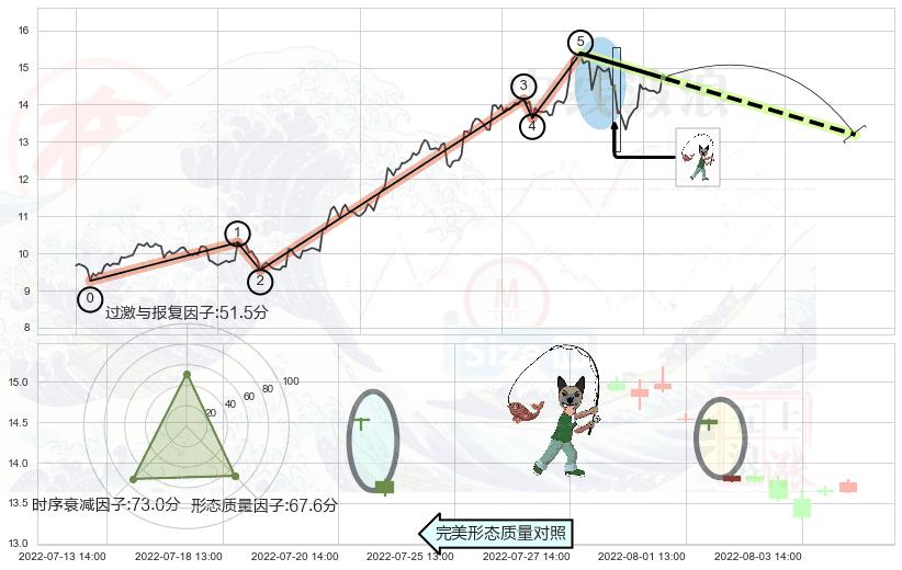 从2022-07-22 14:00至2022-08-12 14:00,共包含31个小时,阶段股价下跌-3.62%,阶段股价变动位移路程比: 1 : 10