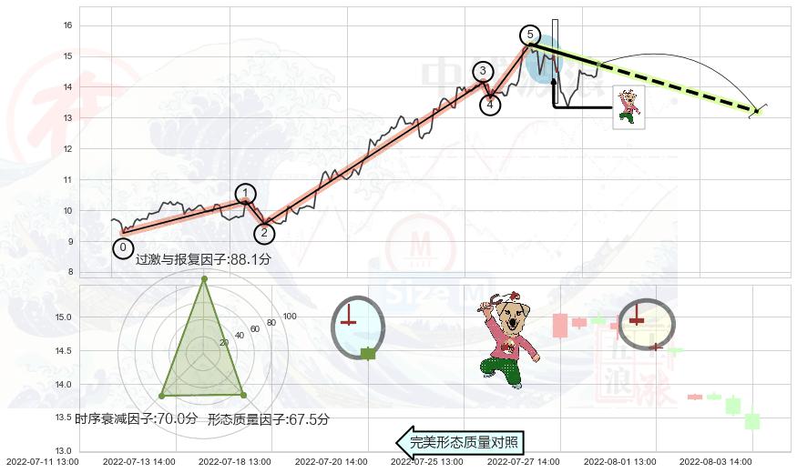 ➣ 射击之星形态 + 波浪理论上涨浪:浪5回调拐点信号叠加后【反向回撤率】中等,【看空】信号叠加【存续影响中等】