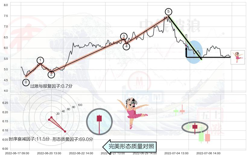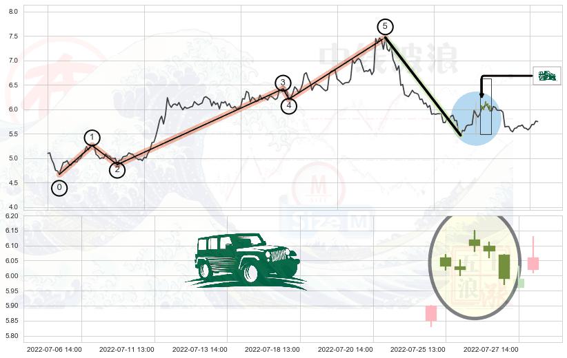 ➢ 🕰 价格走势在2022-07-25 13:00:00至2022-07-27 13:00:00期间形成高档五阴线,残存影响值:-3.07