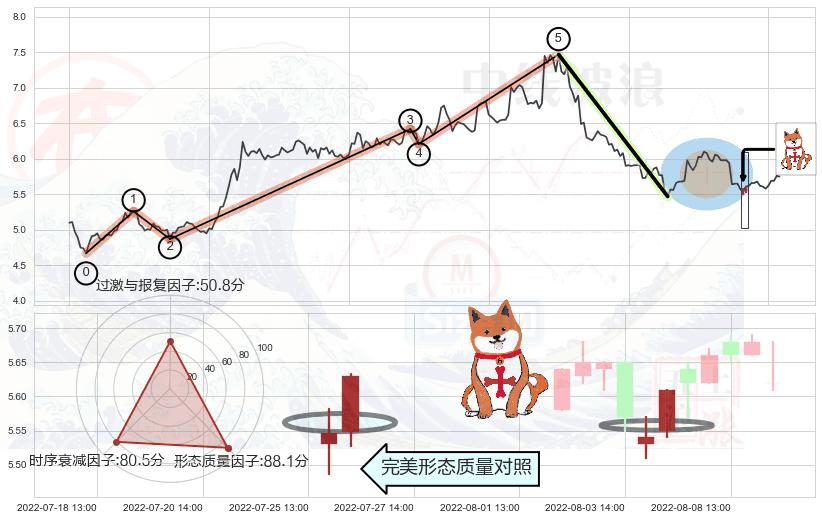 从2022-08-04 13:00至2022-08-12 14:00,共包含14个小时,阶段股价上涨3.76%,阶段股价变动位移路程比: 1 : 2
