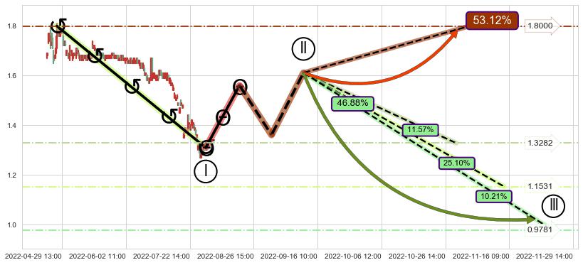 ➣ 循环浪继续向下【平均值】位置(11-14:15, 1.1531),匹配聚类样本比例53.54%, 可能性概率25.10%