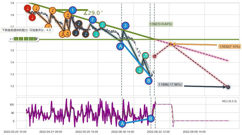➢ 预测:2022-08-23 09:00,【小幅反弹】稳定目前下跌趋势的前提下,预测价格:1.5532