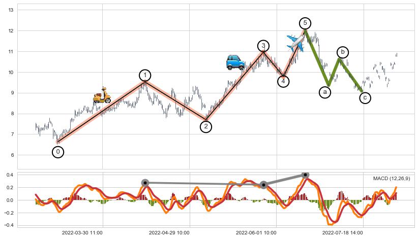 ➣ 第一, 三, 五浪上涨动能逐渐【增强变大】,趋势不断加固