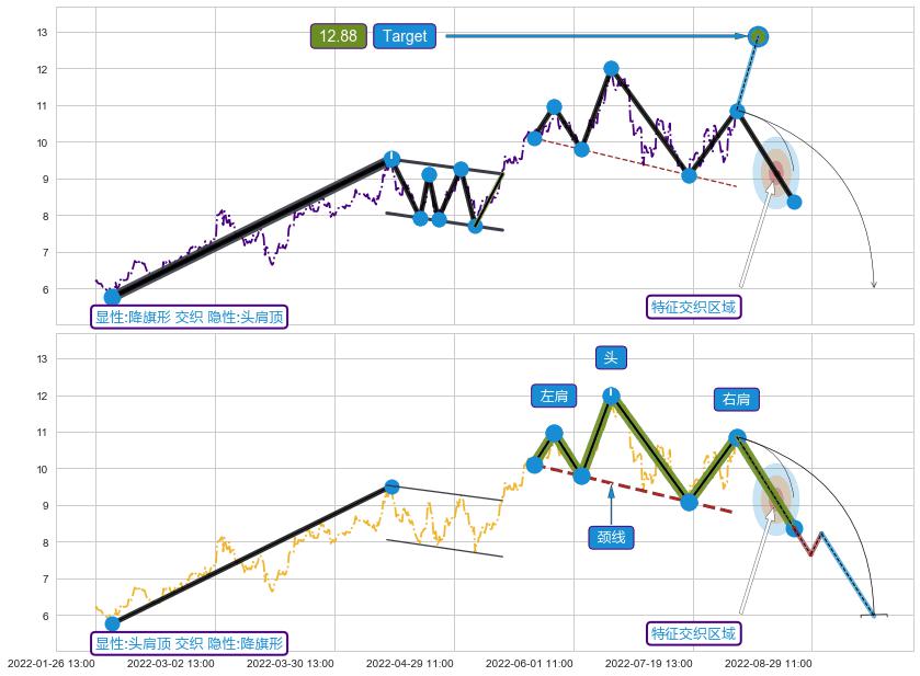 从2022-03-28 10:00至2022-03-30 14:00,共包含14个小时,阶段股价下跌-6.12%,阶段股价变动位移路程比: 1 : 2