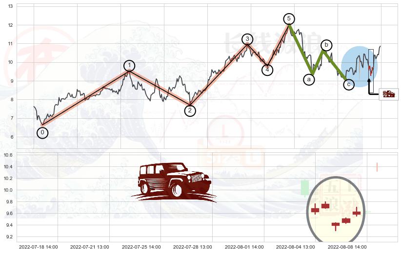 ➢ 🕰 价格走势在2022-08-04 13:00:00至2022-08-08 13:00:00期间形成低档五阳线,残存影响值:3.17