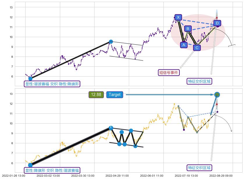 ➢ 谐波赛福属【短级别信号事件】降旗形属【长级别信号事件】长短周期组合信号事件, 短长事件长度比28.96%