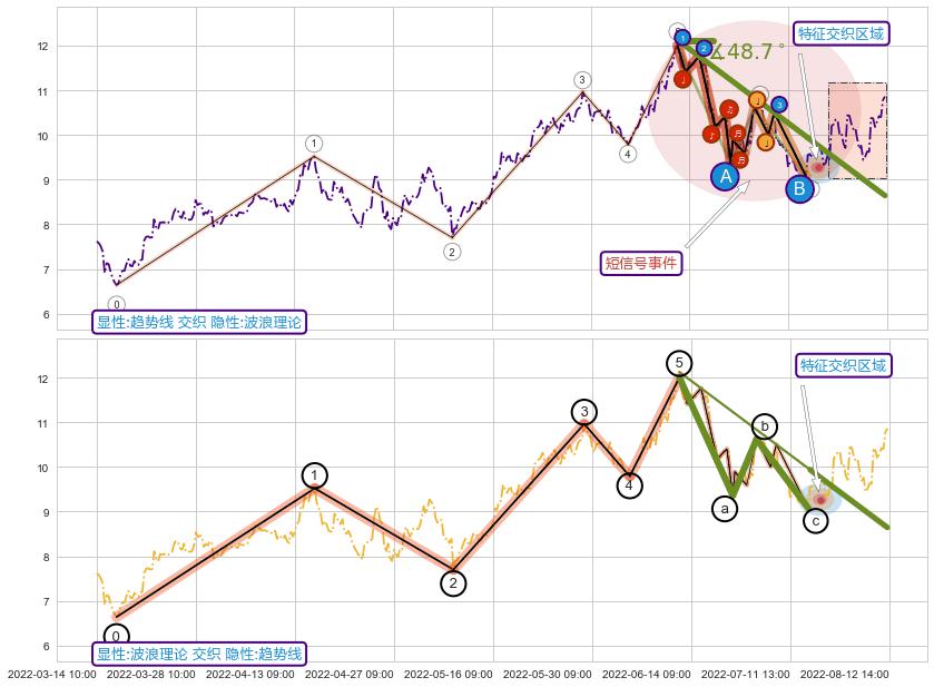 ➢ 趋势线属【短级别信号事件】波浪理论属【长级别信号事件】长短周期组合信号事件, 短长事件长度比22.29%