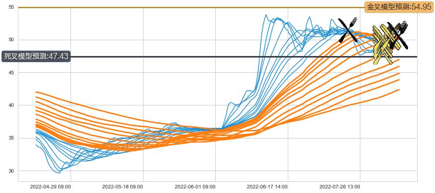 ➢ 5小时均线于(07-19 14:00: 51.34)形成【死叉】基于【死叉历史模型】预测死叉后最低波谷价格: 48.78, 死叉后最低价格45.63,已经下跌超出预测最低波谷价格, 预期反弹