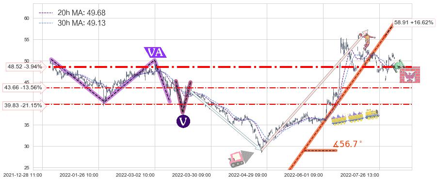 ♘ 支撑价格位43.66,可信任强度45.32%,距离最后交易2022-08-12 14:00形成的收盘价格50.51相差 -13.56%