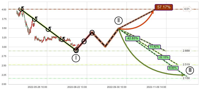 ➣ 循环浪继续向下【平均值】位置(11-22:09, 2.519),匹配聚类样本比例51.72%, 可能性概率22.15%