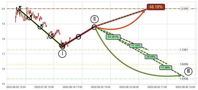 ➢ 循环浪继续向下【最低】位置(09-30:12, 1.5338),匹配聚类样本比例23.13%, 可能性概率11.98%