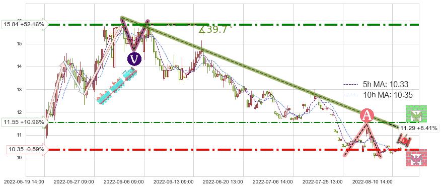 ➢ 预测:2022-08-16 12:00,【小幅反弹】稳定目前下跌趋势的前提下,预测价格:10.94