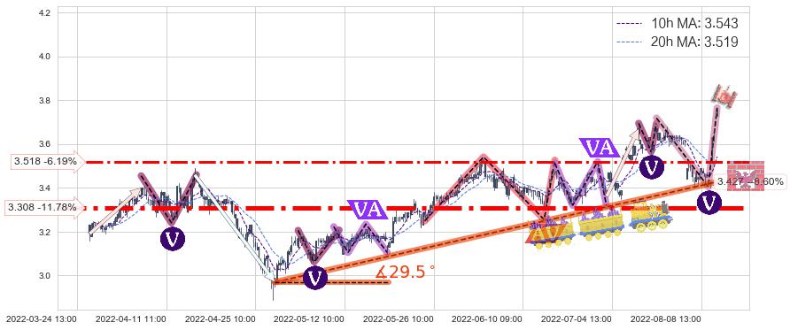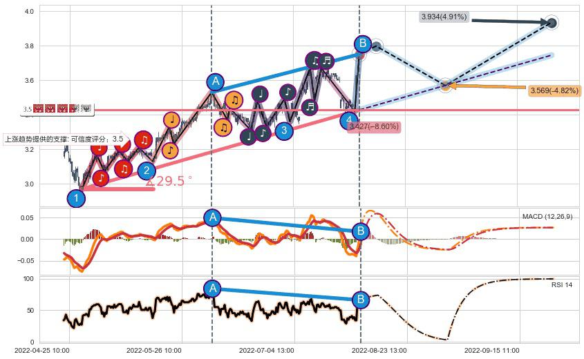 ➣ 预测:2022-08-31 13:00,【小幅回撤】稳定目前上涨趋势的前提下,预测价格:3.569