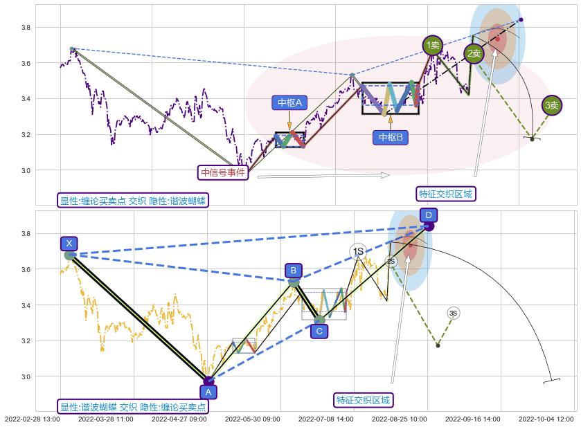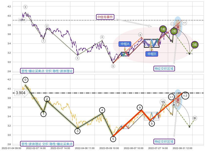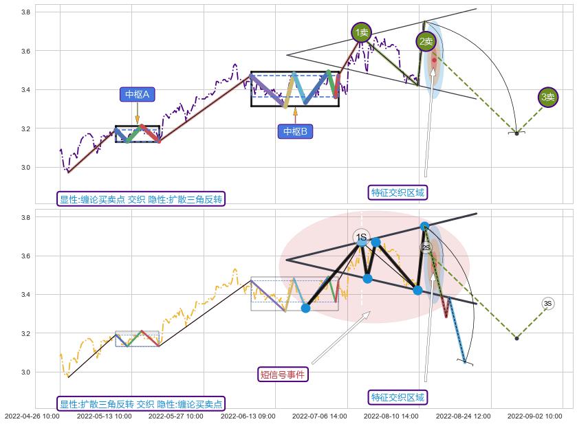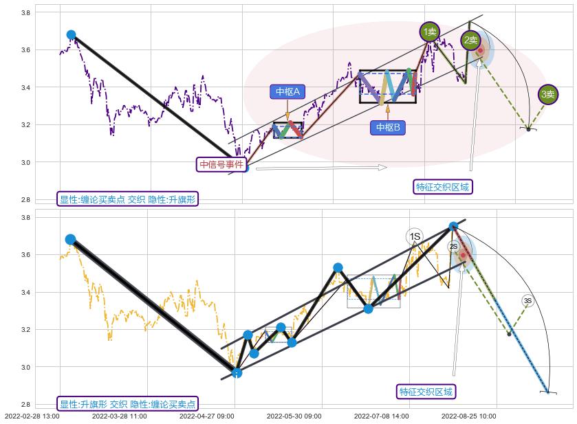 ➣ 缠论买卖点:猜想2卖持续蓄力下跌至3卖 → 下跌 → 风险信号 → 小趋势跟踪