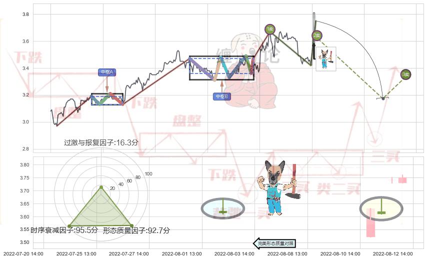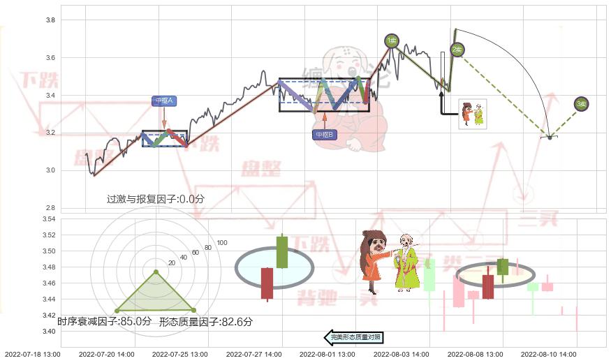 ➢ 🕰 价格走势在2022-08-04 00:00:00至2022-08-04 00:00:00期间形成下降插入线(坠落线),残存影响值:-0.86