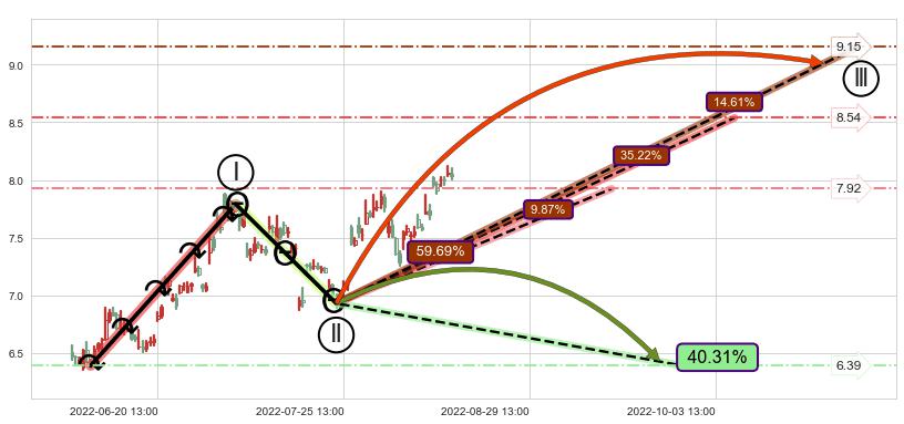 2022-07-15: 第一支撑位6.93有效抑制了下跌浪,成功阻止了价格的继续下跌。