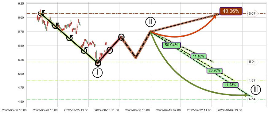 ♘ 阻力价格位5.99,可信任强度67.07%,距离最后交易2022-08-12 14:00形成的收盘价格5.55相差 +7.89%