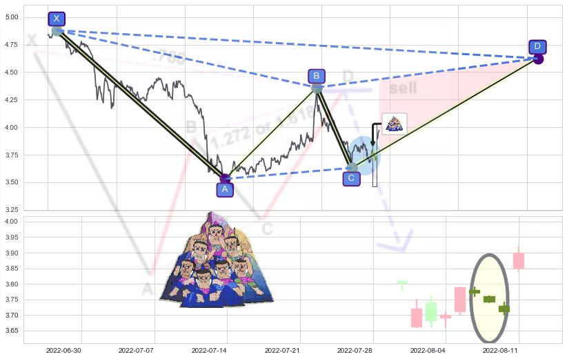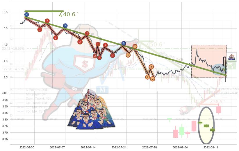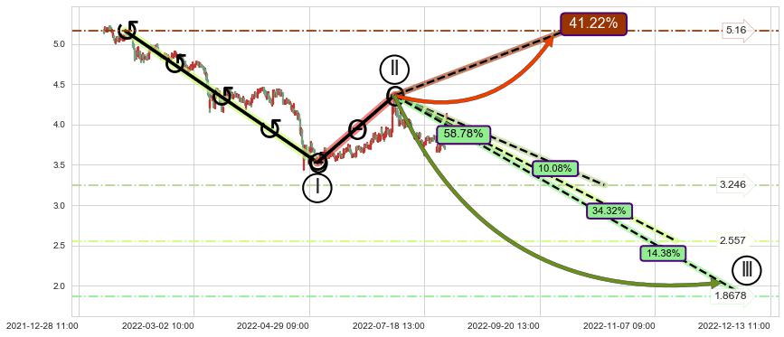 ➣ D点拟合预测价格4.62,距离最后交易收盘价格3.970相差 +16.49%