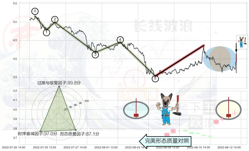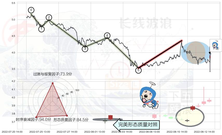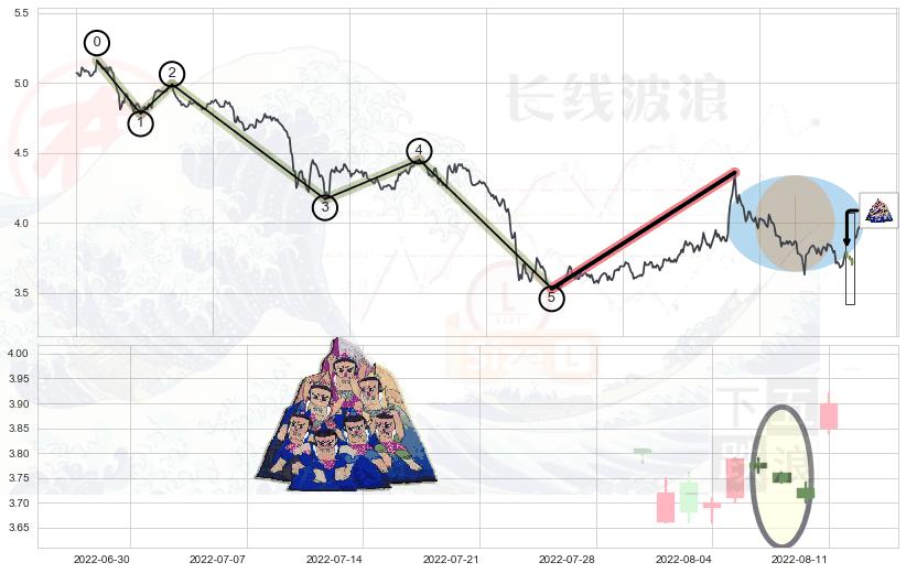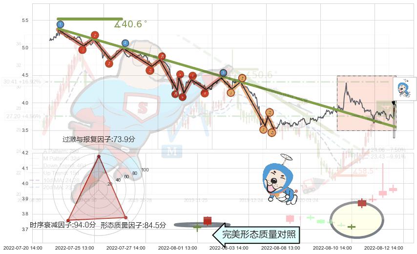 ♘ 支撑价格位3.621,可信任强度94.97%,距离最后交易2022-08-12 14:00形成的收盘价格3.970相差 -8.79%