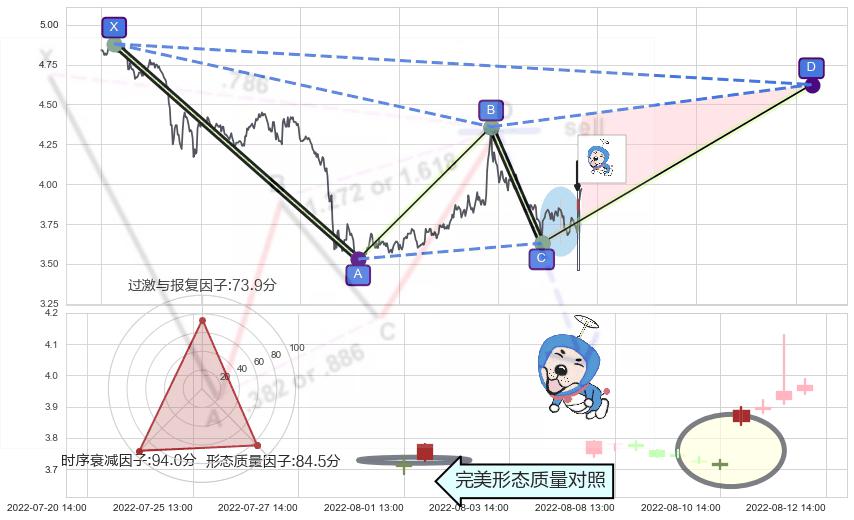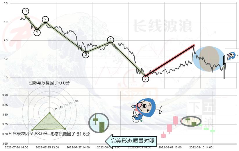 ➢ 🕰 价格走势在2022-08-10 14:00:00至2022-08-11 13:00:00期间形成上涨螺旋桨形态,残存影响值:7.32