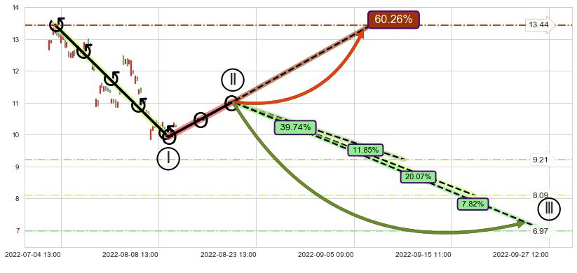 2022-04-27: 第一阻力位13.40有效抑制了下跌浪,成功阻止了价格的继续下跌。