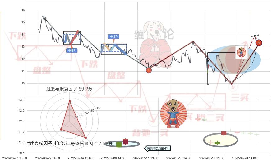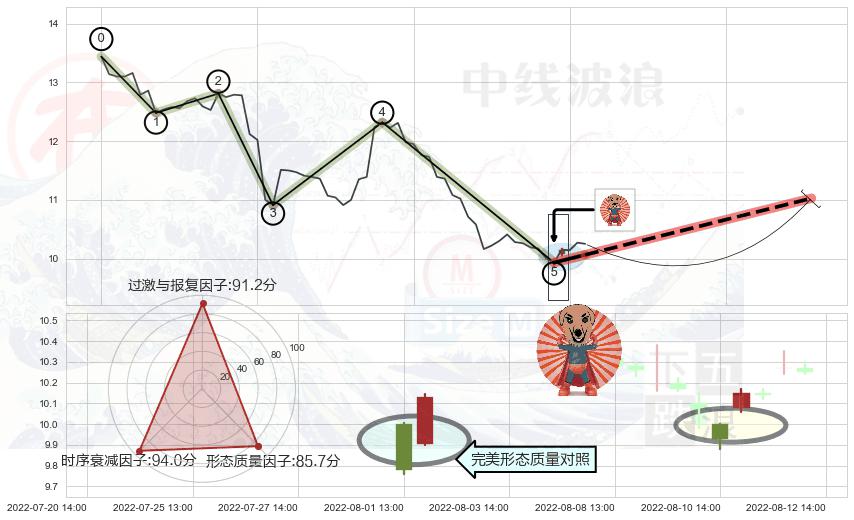 ➢ 🕰 价格走势在2022-08-09 00:00:00至2022-08-09 00:00:00期间形成看涨(低位)倒锤头线,残存影响值:7.35