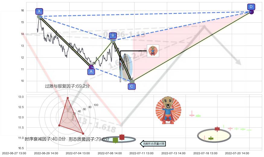 ➢ 看涨(低位)倒锤头线 🔜 谐波鲨鱼下沉击穿c上涨拐点 综合量化分数:51.08 【中性】