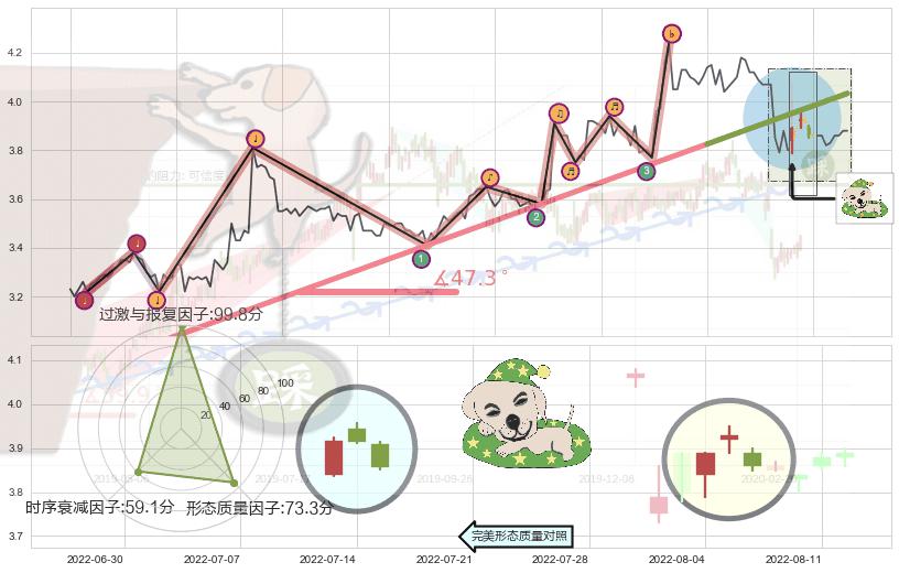 ♘ 支撑价格位3.382,可信任强度86.65%,距离最后交易2022-08-12 14:00形成的收盘价格3.880相差 -12.83%