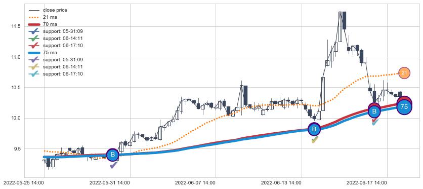 ➣ 75小时均线于(08-10 14:00: 9.89)形成【金叉】基于【金叉历史模型】预测金叉后最高波峰价格: 11.88, 金叉后最高价格10.29,尚未达到预测最高波峰价格, 预期继续上涨