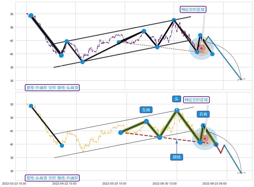 ➢ 头肩顶临近支撑猜想转换阻力下跌 🔜 升旗形支撑破位转换阻力下跌 综合量化分数:29.45 【强烈看空】