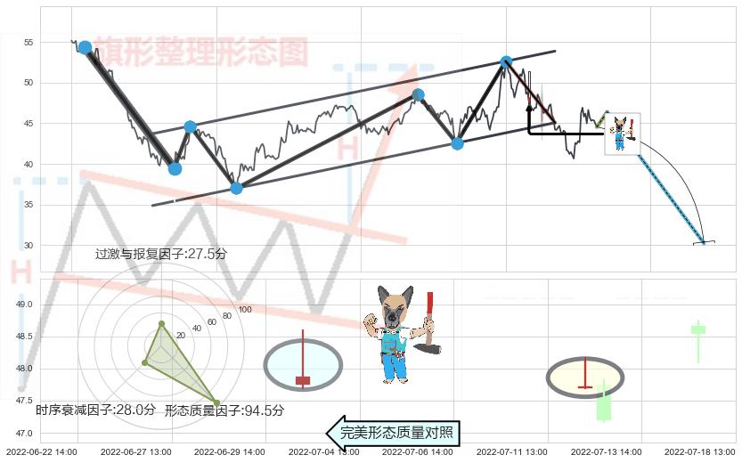 ➢ 看跌(高位倒锤头)流星线 🔜 升旗形支撑破位转换阻力下跌 综合量化分数:43.06 【偏空】