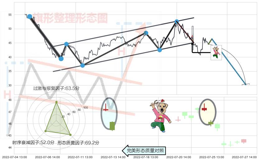 ➢ 射击之星形态 🔜 升旗形支撑破位转换阻力下跌 综合量化分数:40.48 【偏空】