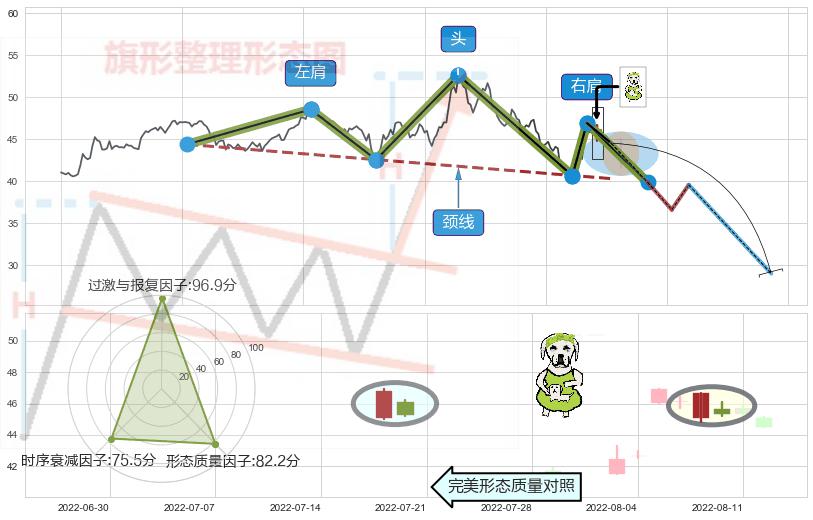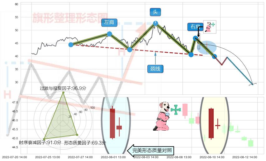 ➢ 下跌身怀六甲 🔜 头肩顶临近支撑猜想转换阻力下跌 综合量化分数:44.62 【偏空】